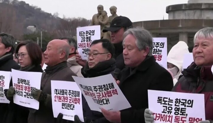 韩民众青瓦台前集会,抗议高市早苗言论